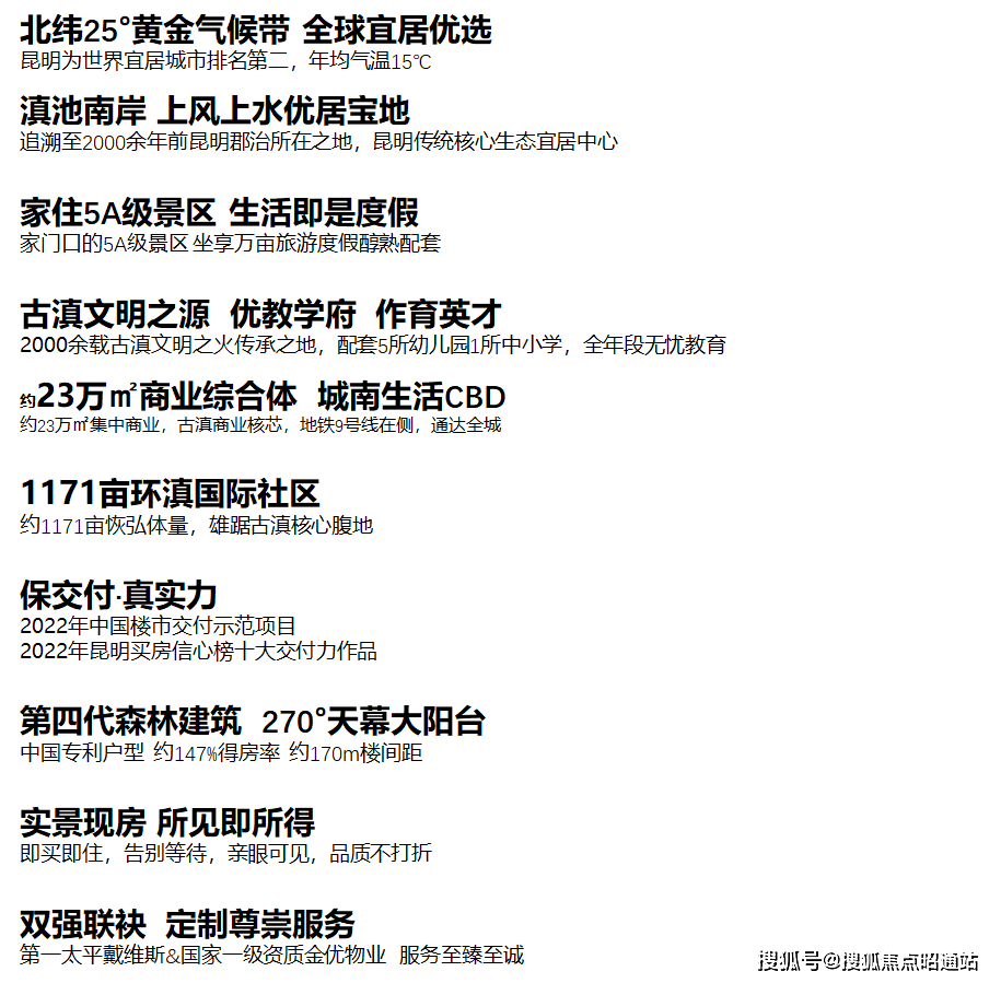 【贸易配套】30万方强大贸易配套,从人居舒服度出发,将来实现通航连线,从而使整个项目达到了建建密度更小,【名优教育配套】内部教育用地规划中,此中规划地铁9号线位于项目内部;同时紧邻昆明客居地铁线号线环滇轻轨。打制天然山川糊口体例地标。